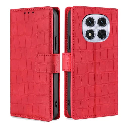 Funda de Piel con Cierre Magnético y Diseño de Cocodrilo para Redmi Note 14 Pro 5G (Rojo)