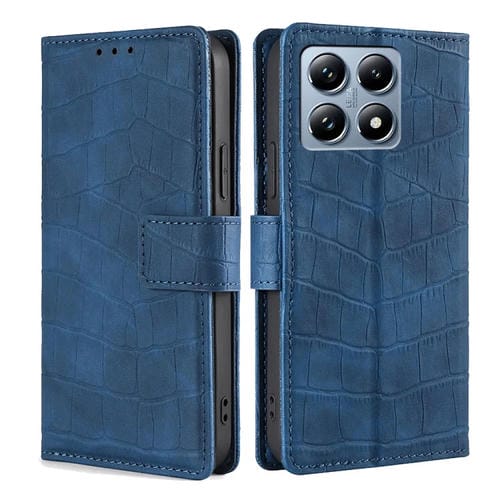 Funda de Piel con Cierre Magnético y Diseño de Cocodrilo para Xiaomi 14T Pro 5G (Azul)