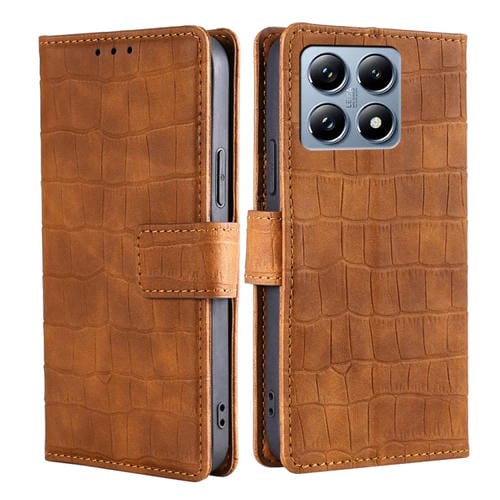 Funda de Piel con Cierre Magnético y Tacto de Cocodrilo para Xiaomi 14T Pro 5G (Marrón)