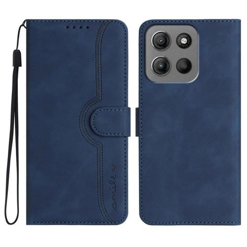 Funda de Piel para Motorola Moto G15 con Diseño de Corazón (Azul Real)