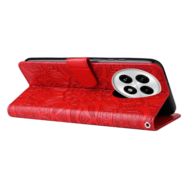Funda de Piel para OnePlus 13 con Diseño de Girasol en Relieve (Roja)