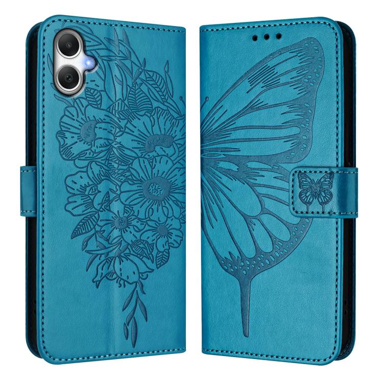 Funda de piel con diseño de mariposa en relieve para Samsung Galaxy A07 4G (azul)