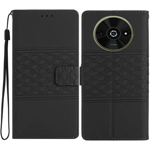 Funda de Piel con Efecto Piel En Relieve de Diamante para Xiaomi Poco C61 (Negra)