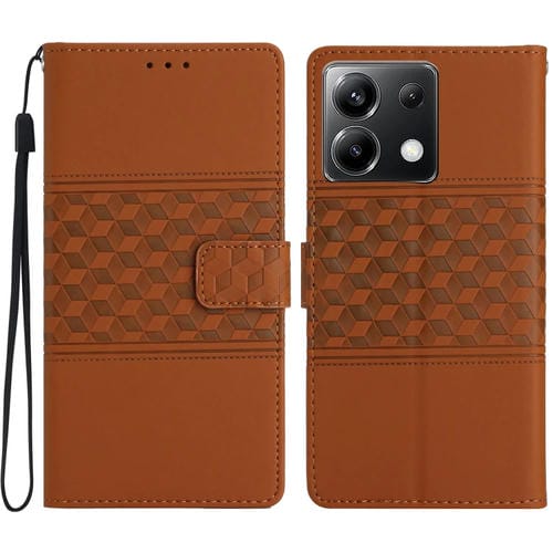 Funda de Piel con Efecto Piel En Relieve de Diamante para Xiaomi Poco X6 (Marrón)