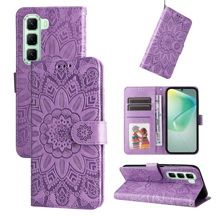 Funda de Piel con Estampado de Girasoles en Relieve para Infinix Hot 50 5G (Morado)