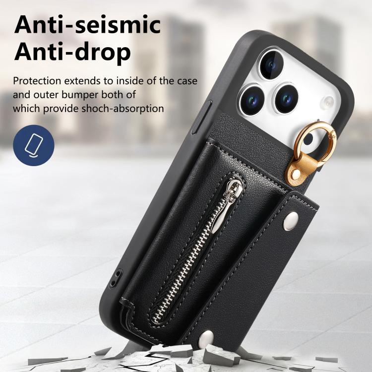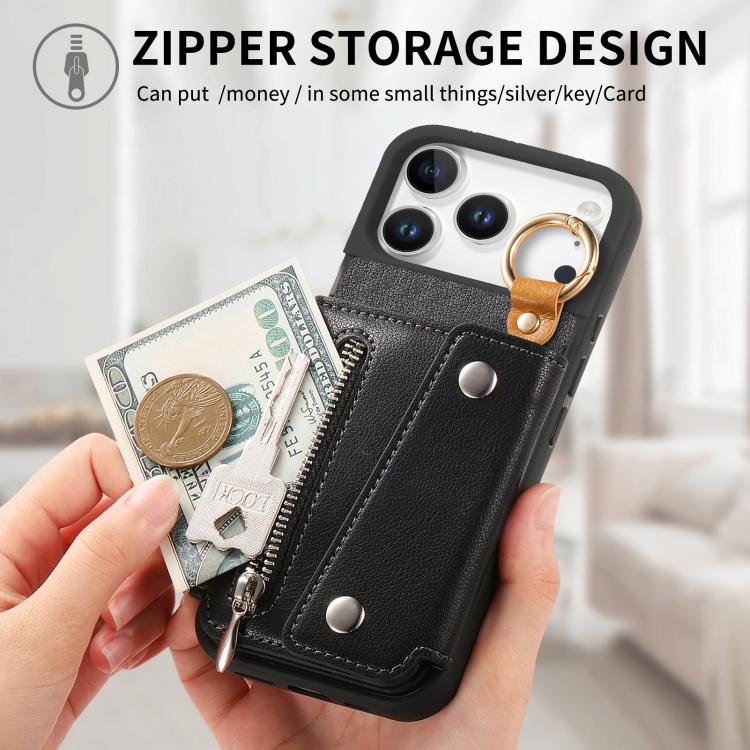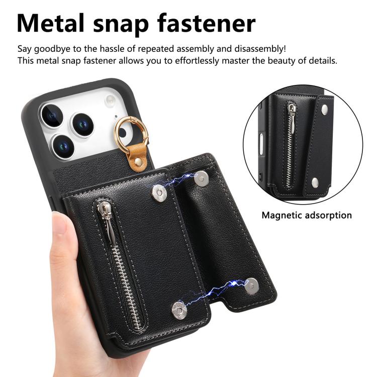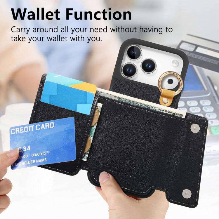 Funda de piel con hebilla en forma de D para iPhone 17 Pro Max (negra)