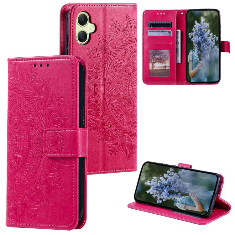 Funda de piel con relieve de flor tótem y cordón para Samsung Galaxy A07 4G (roja)