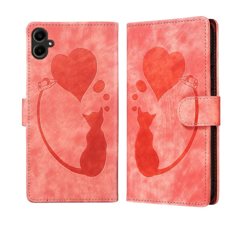 Funda de piel con relieve de gato y corazón para Samsung Galaxy A07 4G / A06 4G (naranja)