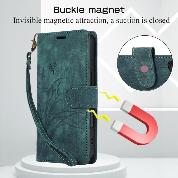 Funda de piel con relieve de mariposa y orquídea para iPhone Air (verde)