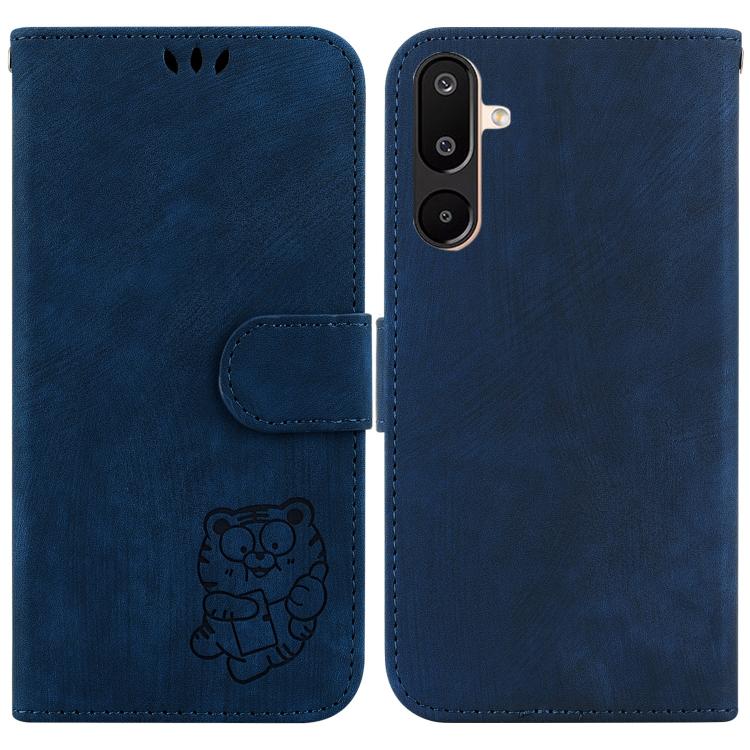 Funda de piel con relieve de tigre para Samsung Galaxy M16 5G / F16 5G / M36 5G (azul oscuro)
