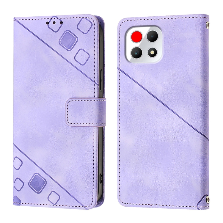 Funda de Piel con Relieve para Teléfono T-Mobile Revvl 7 5G (Morado Claro)