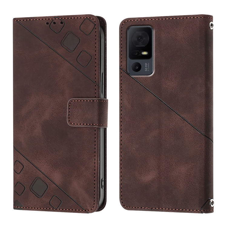 Funda de Piel con Relieve para Teléfono TCL 40 XL/40 T T608Dl (Marrón)