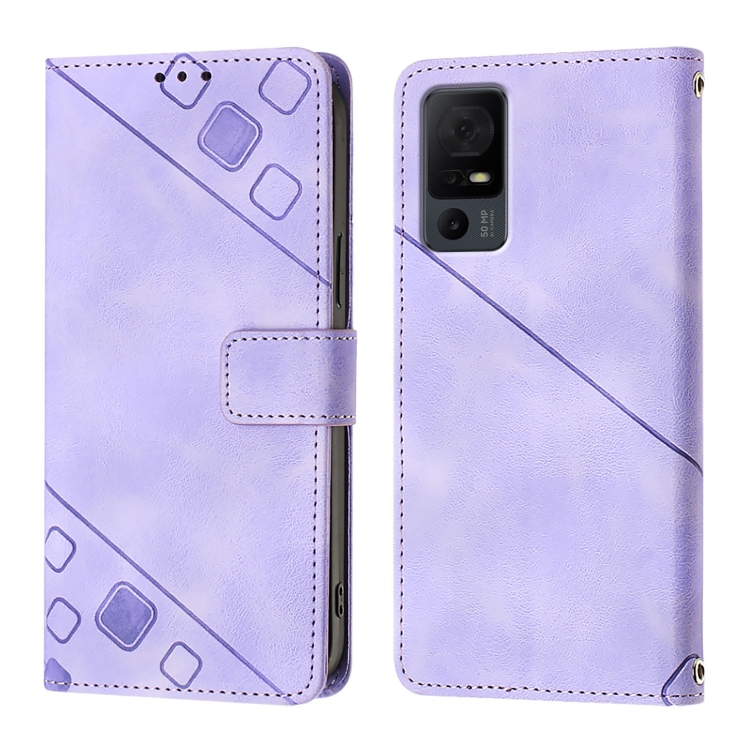 Funda de Piel con Relieve para Teléfono TCL 40 XL/40 T T608Dl (Morado Claro)