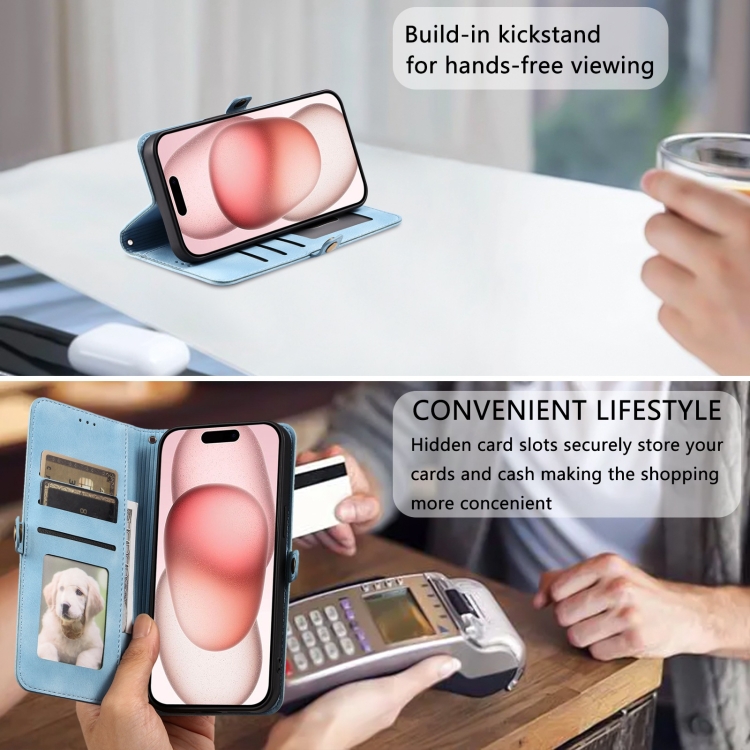 Funda de Piel con Relieve Totem para iPhone 16 Pro Max (Azul)