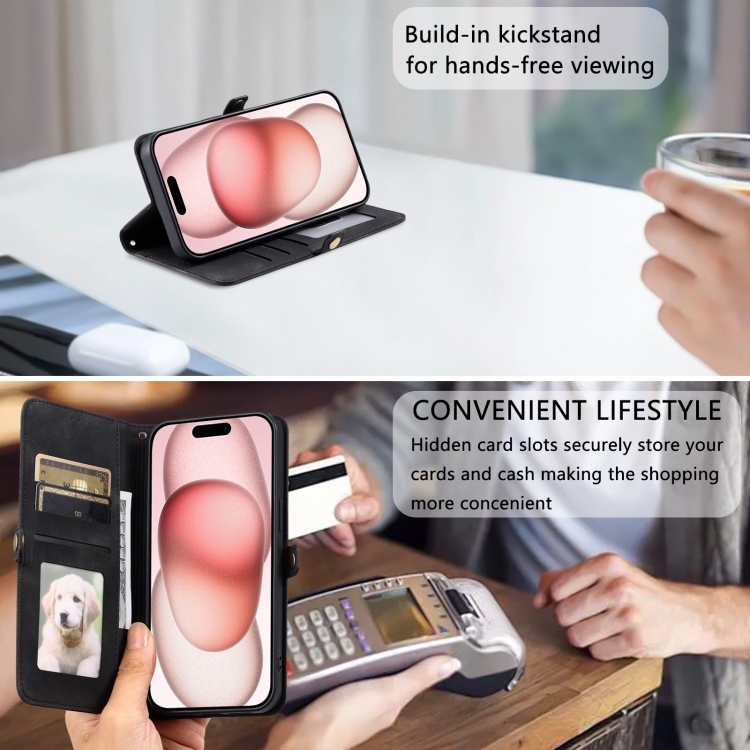 2. Práctica función de tarjetero: Incluye ranuras para tarjetas y un compartimento para guardar tus tarjetas de crédito, dinero en efectivo o billetes pequeños.