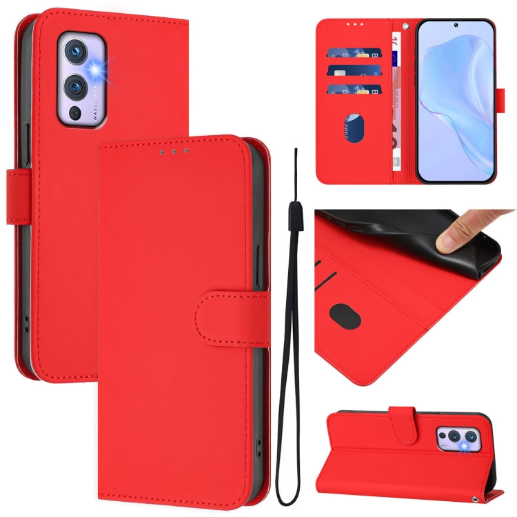 Funda de Piel para OnePlus 9 con Tacto Suave y Color Liso (Rojo)