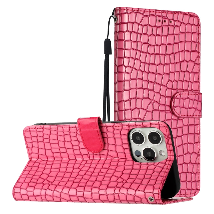 Funda de Piel con Tapa Horizontal Textura de Cocodrilo para iPhone 16 Pro (Rosa Rojo)