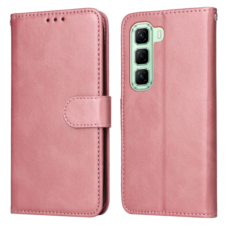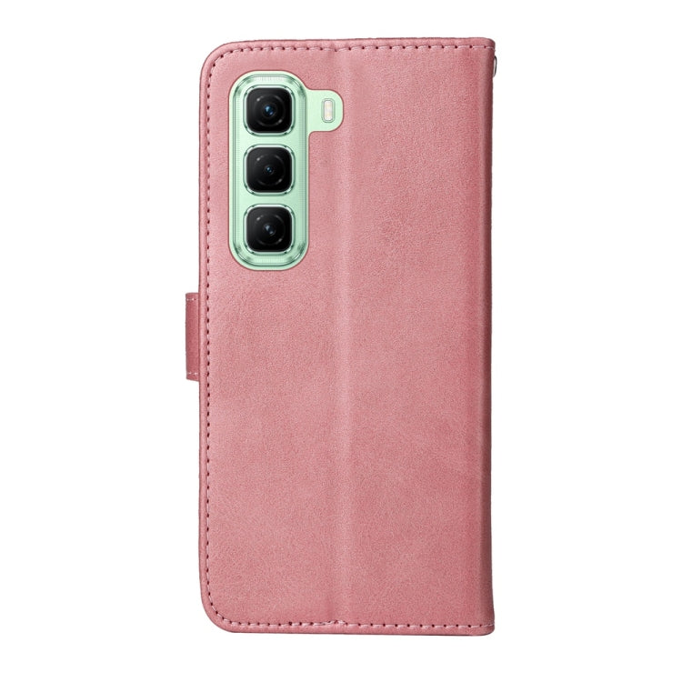 Funda de Piel con Tapa y Textura Clásica Becerro para Infinix Hot 50 5G (Oro Rosa)