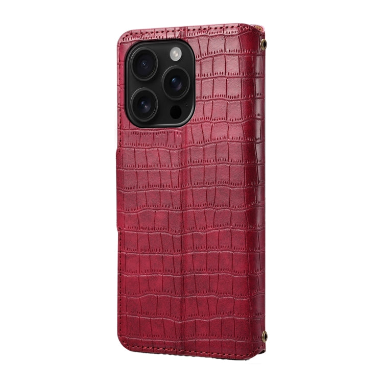Funda de Piel Denior Textura de Cocodrilo con Borde Aceitado para iPhone 16 Pro (Rosa Rojo)