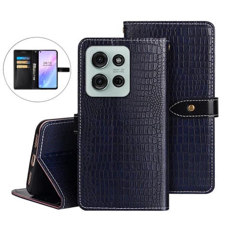 Funda de Piel con Textura de Cocodrilo para Motorola Moto G75 5G (Azul Oscuro)