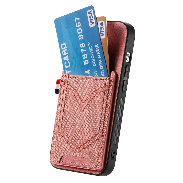 Funda de Piel con Textura Vaquera para iPhone 16 Pro Max con Ranura para Tarjetas (Rosa)