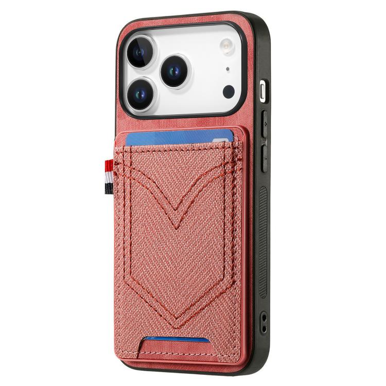 Funda de piel con textura vaquera para iPhone 17 Pro Max con ranura para tarjetas (rosa)