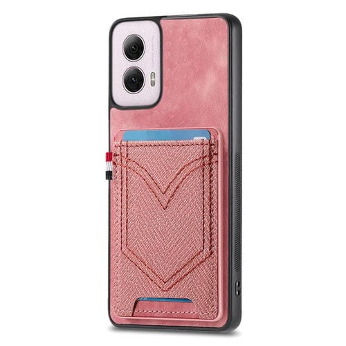 Funda de Piel con Textura Vaquera para Motorola Moto G Power 5G 2024 con Ranura para Tarjetas (Rosa)