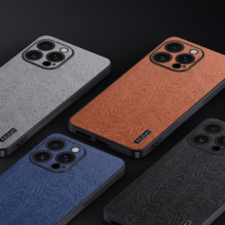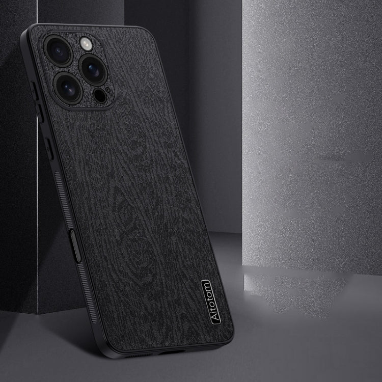 Funda para iPhone 16 Pro de Piel de Corteza de Árbol a Prueba de Golpes (Negra)