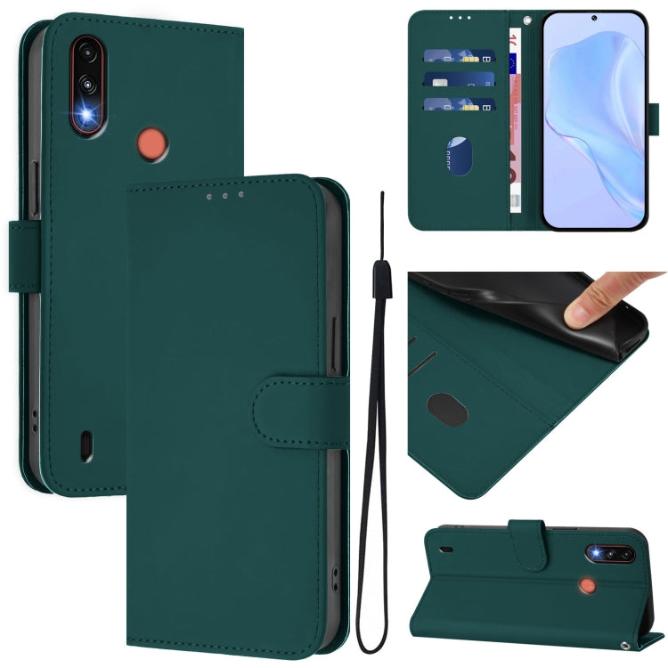 Funda de Piel Sintética con Cordón para Motorola Moto E7 Power (Verde Oscuro)