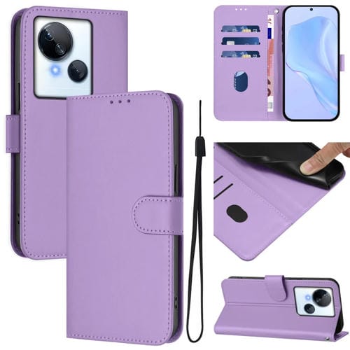 Funda de Piel para Tecno Spark 10 5G con Textura y Cordón (Morado Lavanda)