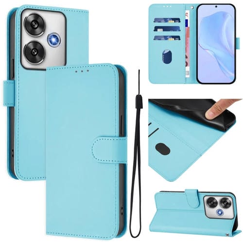 Funda de Piel Sintética con Cordón para Xiaomi Poco F6 5G (Azul Cielo)