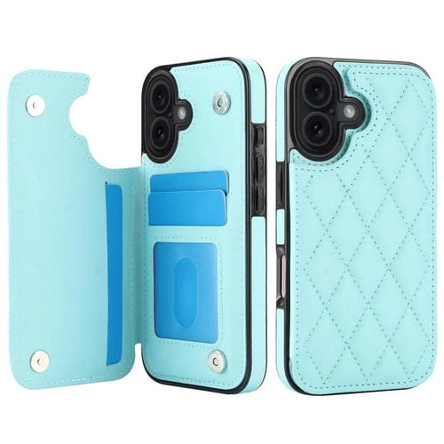 Funda de piel sintética con doble hebilla y diseño rómbico para iPhone 17 (azul)