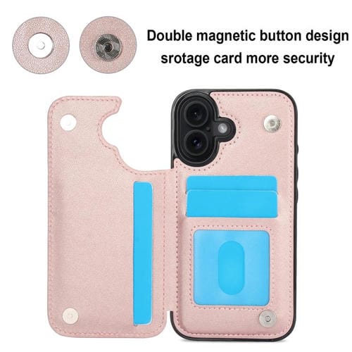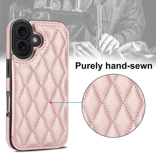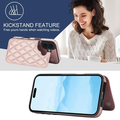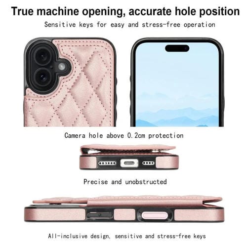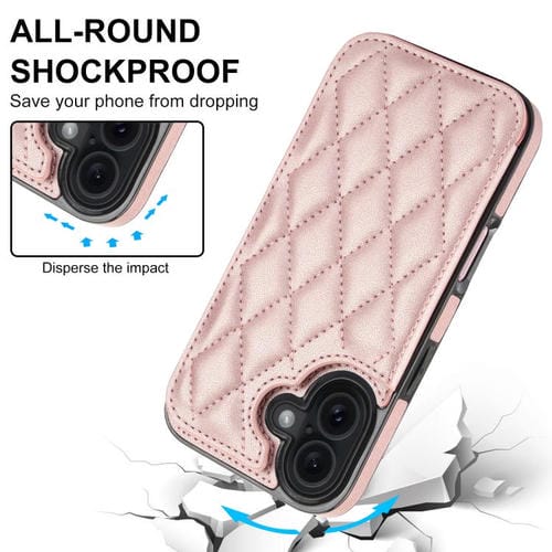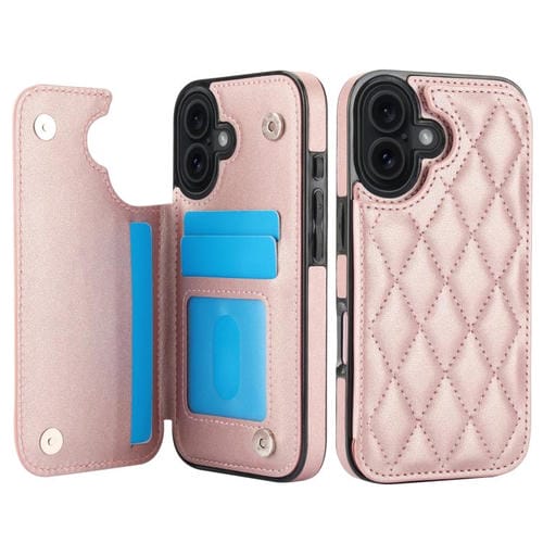Funda de piel sintética con doble hebilla y diseño rómbico para iPhone 17 (oro rosa)