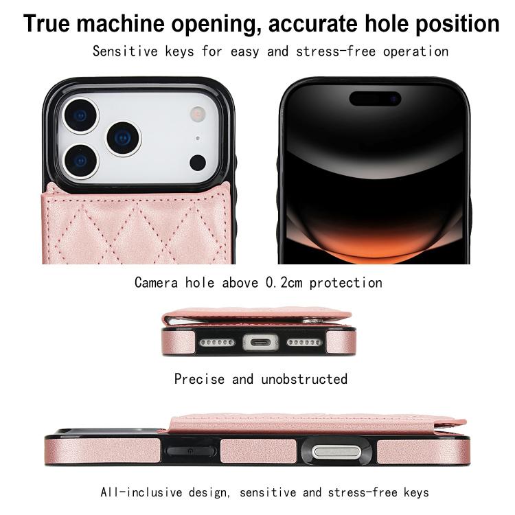 Funda de piel sintética con doble hebilla y diseño rómbico para iPhone 17 Pro Max (oro rosa)