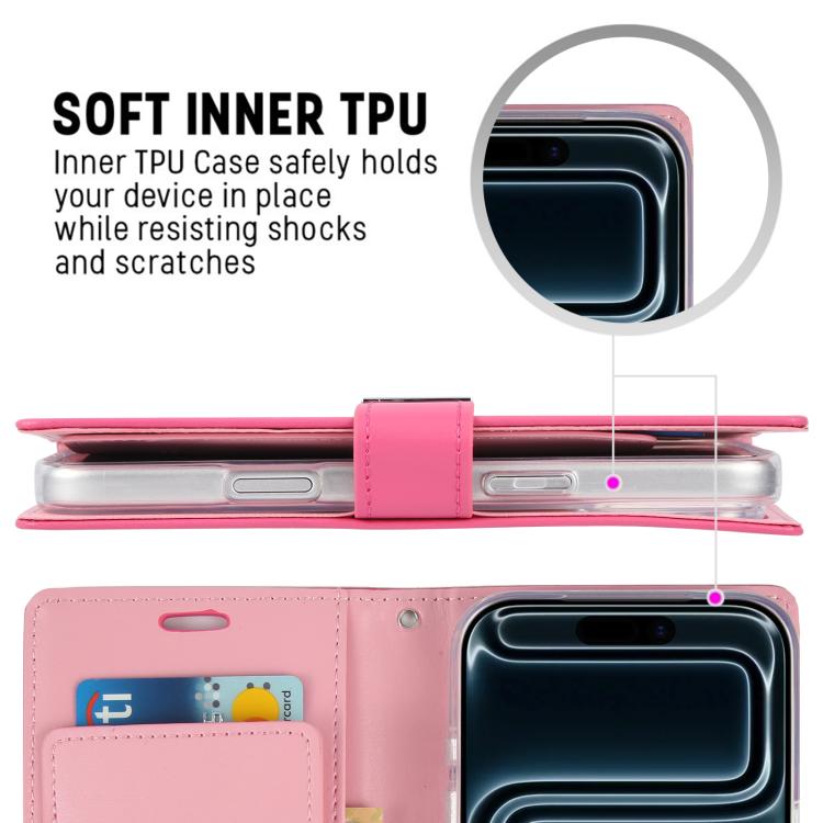 Funda de piel texturizada Crazy Horse GOOSPERY RICH DIARY para iPhone 17 Pro Max (Rojo Rosa)