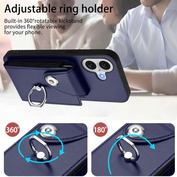 Funda de PU con cordón para iPhone 17, con tarjetero, anillo y soporte (azul)