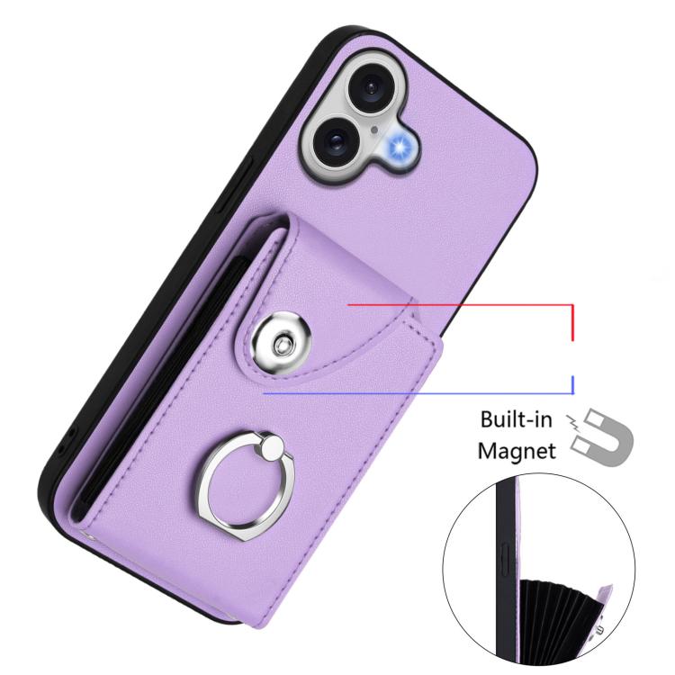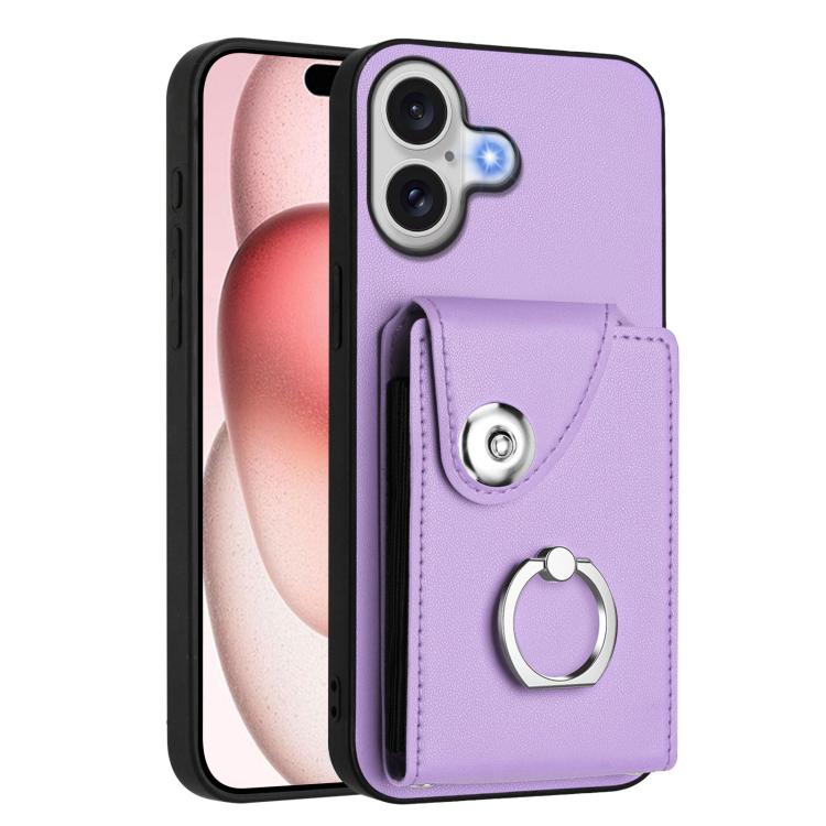 Funda de PU con cordón para iPhone 17, con tarjetero, anillo y soporte (morado)