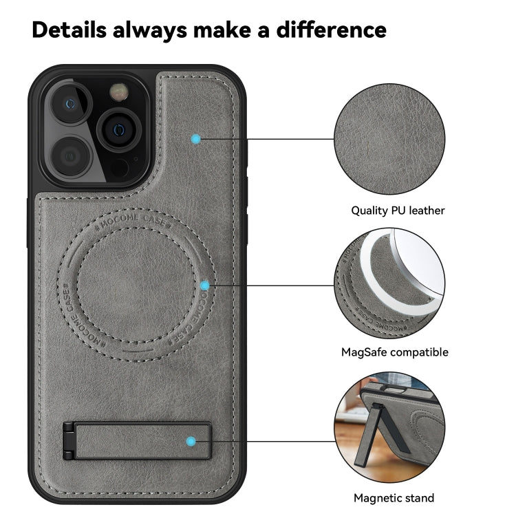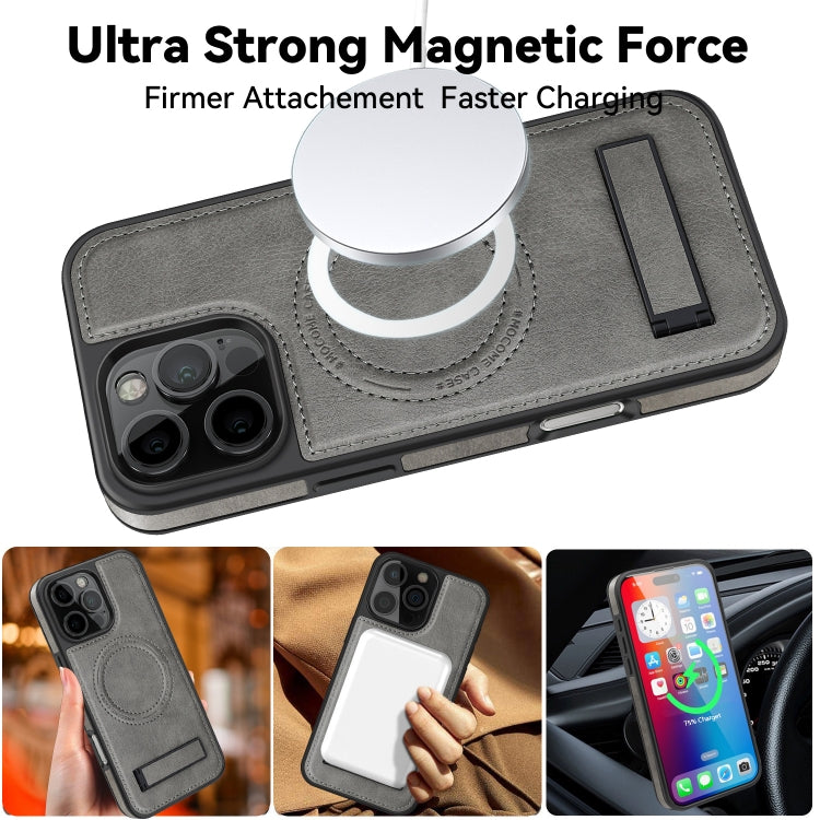 Funda de Pu con Soporte Multifunción Magsafe para iPhone 16 Pro (Gris)