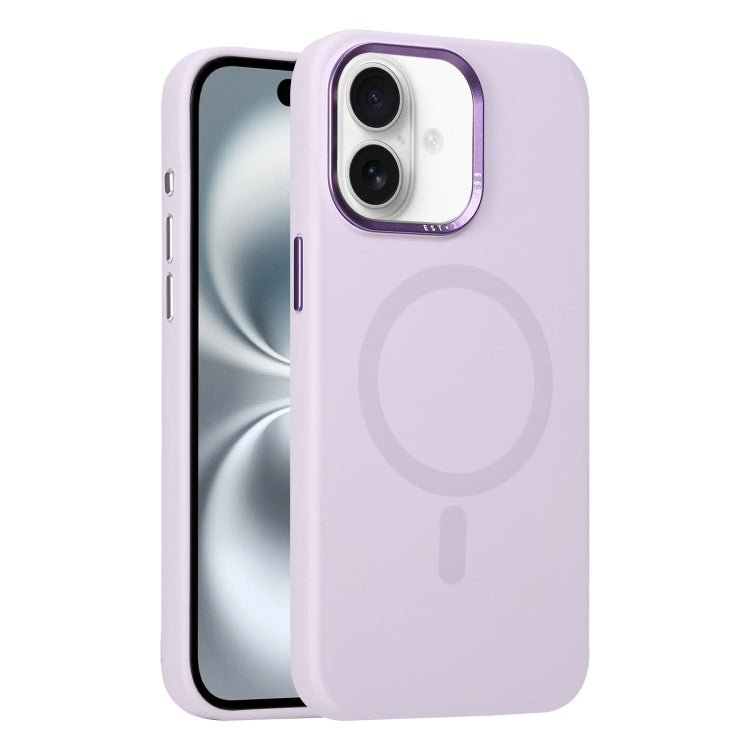 Funda de Silicona Líquida con Marco de Lente de Metal Magsafe para iPhone 16 (Morado Claro)