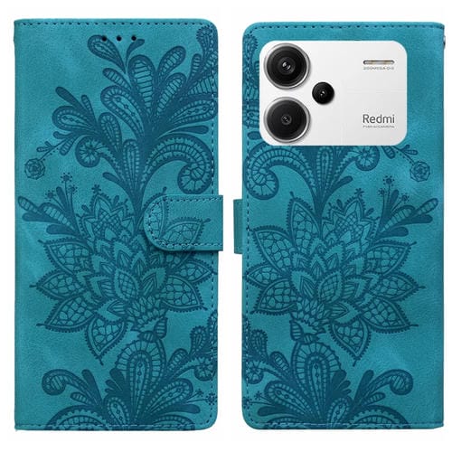 Funda de Teléfono con Hebilla Magnética de Pu con Encaje Floral En Relieve y Correa para la Muñeca para Redmi Note 13 Pro+ (Verde)