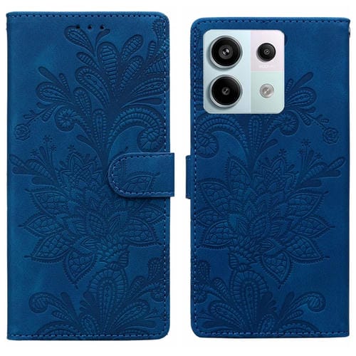 Funda de Teléfono con Hebilla Magnética y Encaje Floral En Relieve para Redmi Note 13 Pro 4G (Azul)