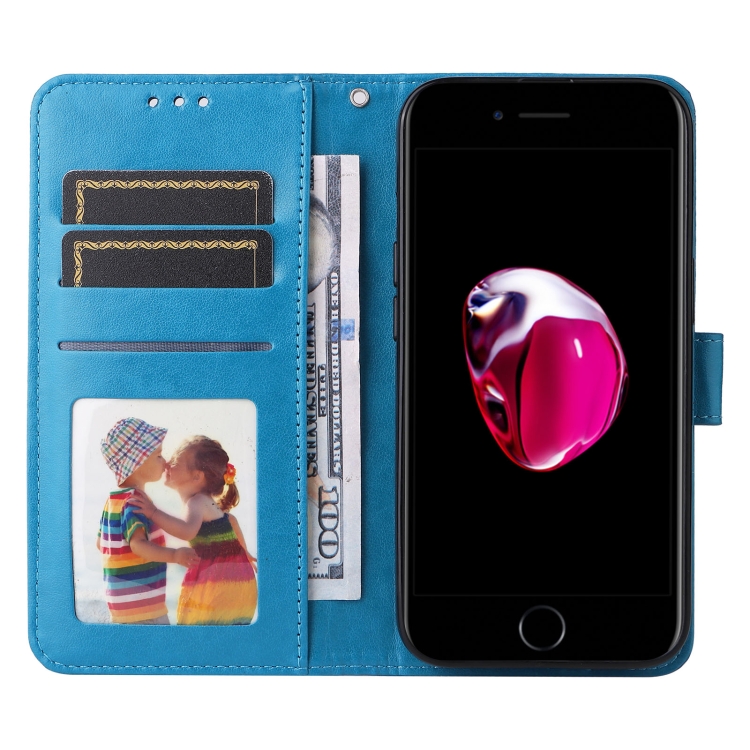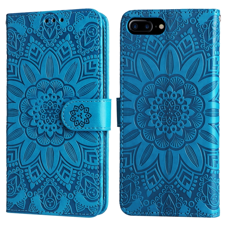 Funda de Teléfono Cuero con Estampado de Girasol En Relieve para iPhone 7 Plus / 8 Plus (Azul)