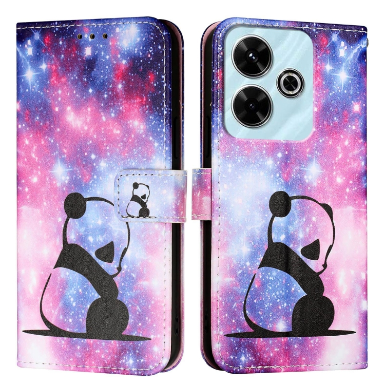 Funda de Teléfono de Cuero con Patrón de Dibujo de Colores de Tejido Liso para Xiaomi Redmi 13 4G (Baby Panda)