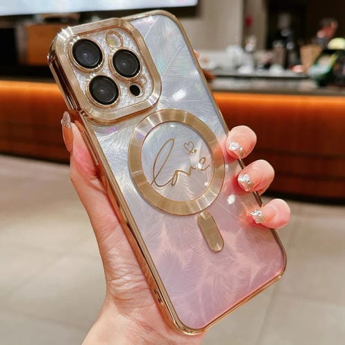 Funda de teléfono TPU con purpurina y degradado plumas de amor duales para iPhone 11 Pro (Dorada)