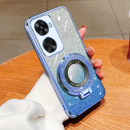 - 1x Funda de TPU con Soporte Redondo y Purpurina Degradada para Huawei Nova 11 Se (Azul Sierra)