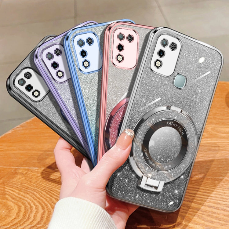 Funda TPU con Soporte Redondo y Purpurina Degradada para Infinix Hot 10 Play (Morado)