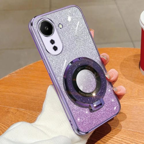 Funda de Teléfono de TPU con Soporte Redondo y Purpurina Degradada Plateada para Redmi 13C 4G (Morado)