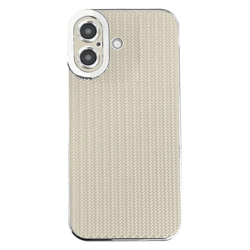 Funda de Teléfono TPU Textura Granulada Borde Plateado Galvanizado iPhone 16 (Beige)