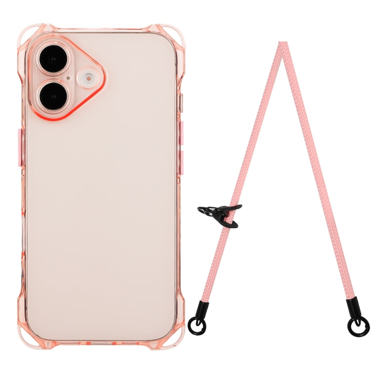 Funda TPU a Prueba de Golpes para iPhone 16 con Cuatro Esquinas y Cordón (Rosa)