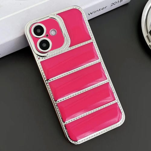 Funda TPU iPhone 16 Borde Plateado Galvanizado (Rosa Rojo)
